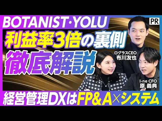 ビジネス映像メディア「PIVOT」の番組「&EVENT」にて、当社取締役執行役員CFO原が「"BOTANIST"のI-neに学ぶ|急成長の壁を越え、利益を上げる『経営管理DX」をテーマとした動画に出演しました。下記URLより、是非ご視聴ください。 |
