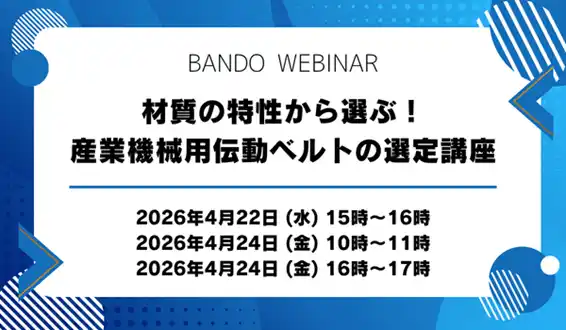 【バンドー化学株式会社】 【無料ウェビナー】材質の特性から選ぶ!産業機械用伝動ベルトの選定講座