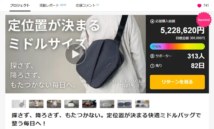 プロジェクト総額3億円を突破、ありそうでなかった製品を通してワクワクと感動をお届けする「NIG(ニグ)オンラインストア」を運営する合同会社NIG(本社:茨城県石岡市、代表:佐々木 亮人、以下NIG)は、累計ユーザー数4万人突破のシリーズ新作、“定位置が決まる”ミドルサイズバッグ『QUICK PACK 11s & 14s』新色の先行販売を応援購入サイトMakuakeにて2026年4月7日(火)12時より開始。初日で503万円、301名の申し込みと反響がありました。 |