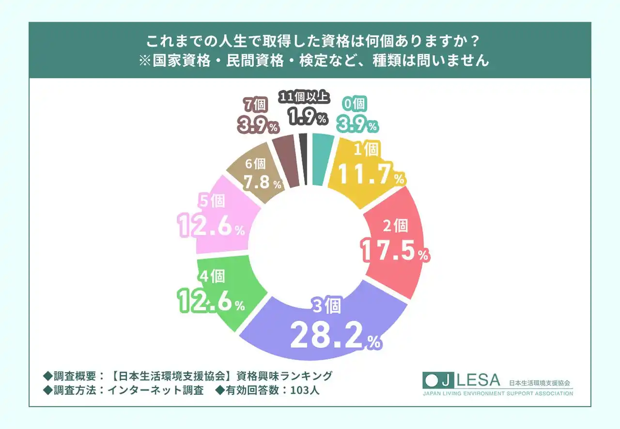 これまで取得した資格の数、最多は「3個」の28.2% |
