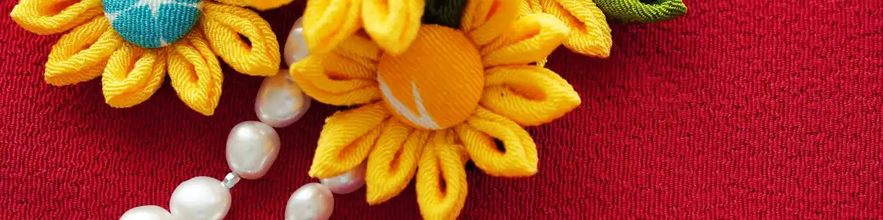 この資格では、日本の伝統工芸であるつまみ細工の基礎知識から、道具の使い方、布や材料の特徴、糊の練り方などの下準備、梅・桜・バラ・百合などの花飾りや和かんざしの作り方まで、つまみ細工に関する幅広い知識を体系的に習得できます。 |