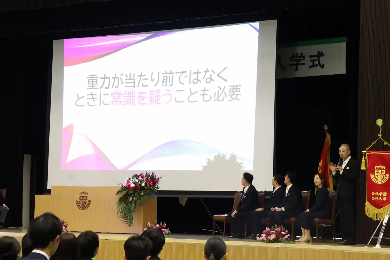 4月5日(日)の入学式では、新入生を対象に古川氏が特別講演を行いました。講演では、国際宇宙ステーションでの仕事や生活の様子を、動画を交えて紹介しました。宇宙での経験から得た学びとして、普段当たり前だと思っている「重力」が宇宙では当たり前ではないように、「ときに常識と言われていることを疑うことも必要」と語りました。また、新入生へのお祝いの言葉として「大学時代は様々な経験ができる貴重な時間です。視野を広げ、いろいろな挑戦をしてください。皆さんの挑戦を応援しています」とエールを送りました。 |