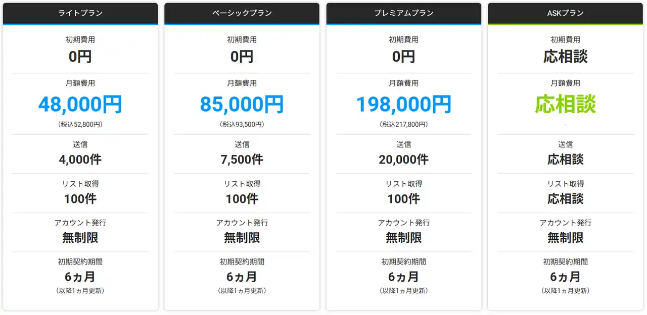 | 4.8万円~で4000件以上の企業にアプローチが可能(1件あたり12円~)、自社での作業やフォームDM代行などに比べ、時間を大幅に短縮しながら低コストで大量の営業ができるため、新規案件の獲得効率を最大化します。また独自チューニングしたAIを使うことでRPAなどに比べ高い送信成功率を実現しています。 | ||||||||||||