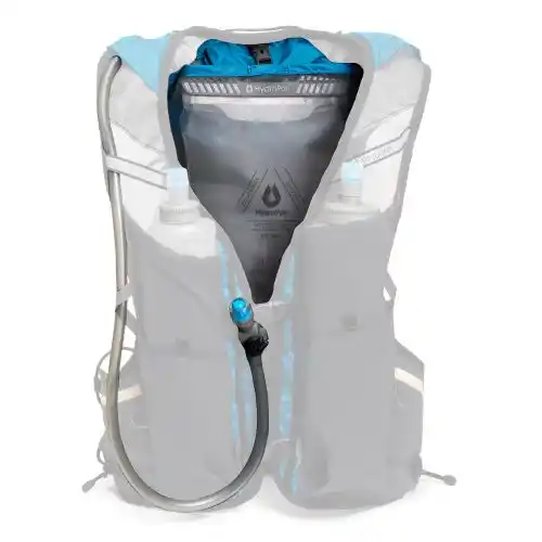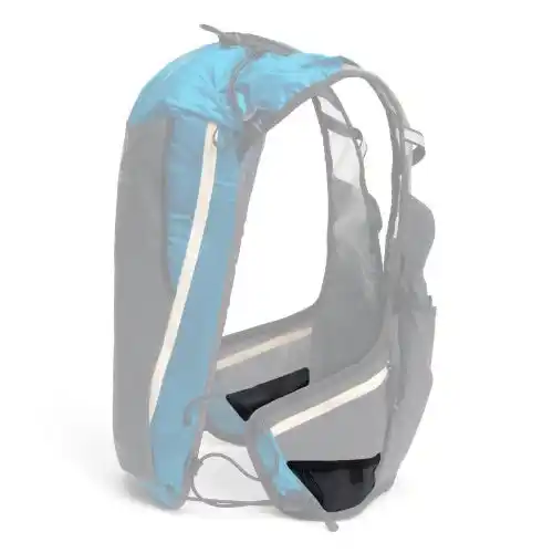 ハイドレーションパックは、背中との接地面の専用ポケットに収納可能。サスペンションシステムにより、水量が減っても身体と密着した圧縮状態が保たれ、走行中の水の揺れによる走行リズムの乱れを抑えます。ハイドレーションホースは左右の肩どちらからでも通すことができます。 |