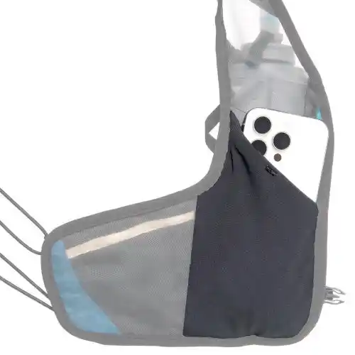 スマホや追加のソフトフラスクの収納に最適なショルダーハーネス内側のレイヤーポケット |