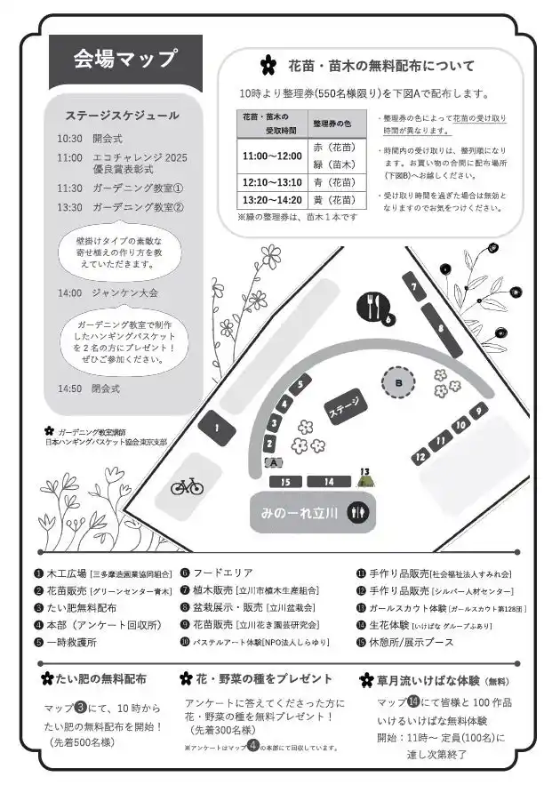 大人気の花苗・苗木の無料配布は、550名様にプレゼント。恒例のたい肥の配布も行います。 |