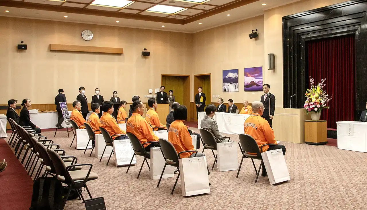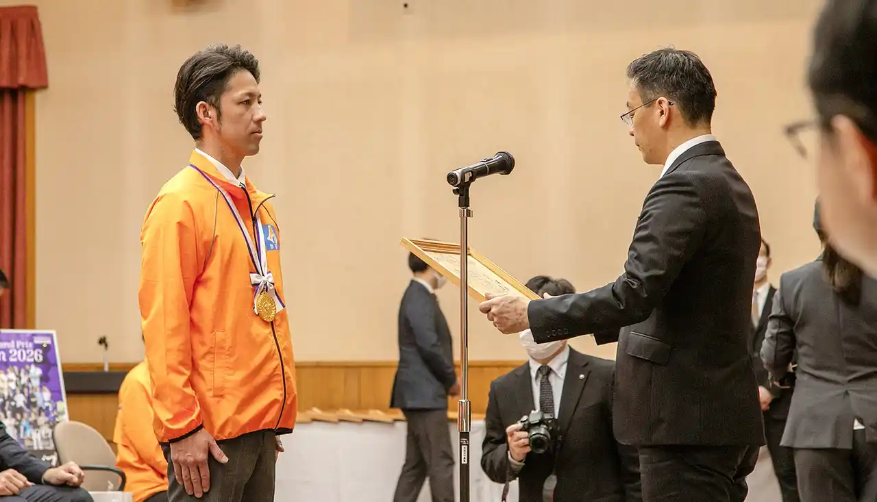 | これを受け、静岡県庁にて執り行われた静岡県選手団の表彰式において、原田大工本人への知事顕彰が授与されたほか、金賞受賞者を輩出した所属団体として、株式会社平成建設に対しても知事褒章が授与されましたことをお知らせいたします。 | |||||||||