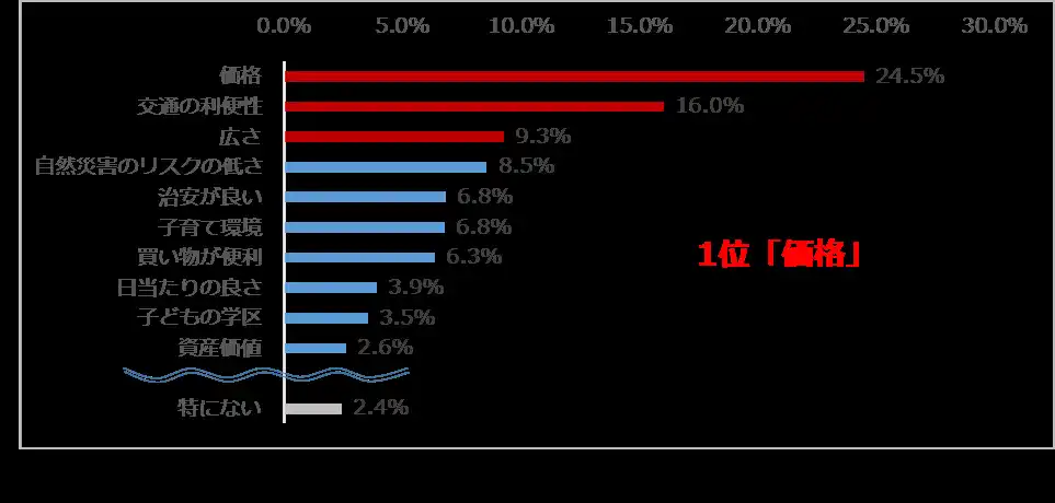 戸建て住宅を建てる際に土地選びで最も重視したい点1位は「価格」。