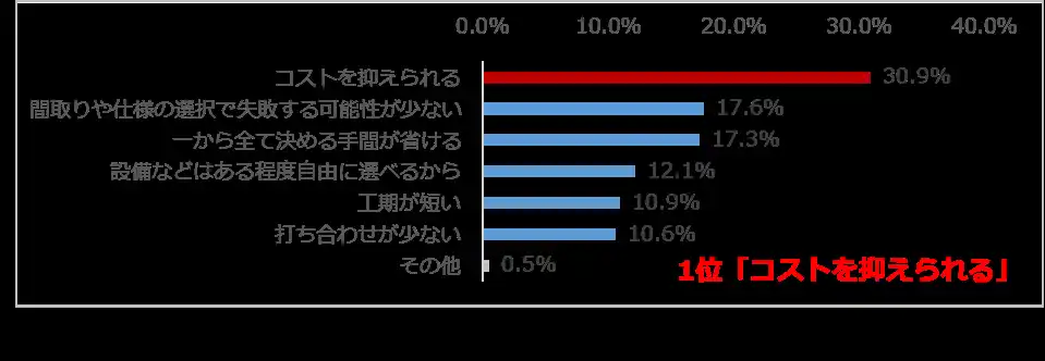 戸建て住宅を建てる際に住宅メーカーを選ぶ上で重視すること1位は「コスト感」。