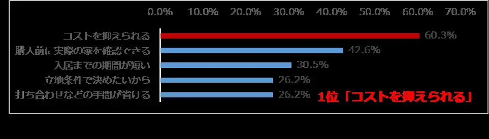 規格住宅、建売住宅、中古住宅を希望する理由1位はいずれも「コストを抑えられる」。