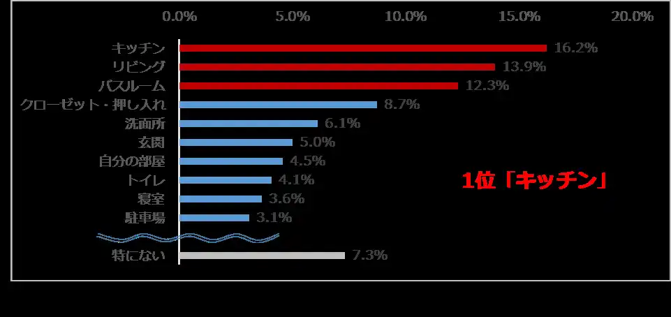 現在の住まいで最も不満に感じている場所1位は「キッチン」。