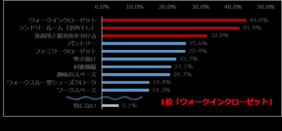 | 採用したい間取りは「ウォークインクローゼット」が最多で4割以上。 | |||||||||