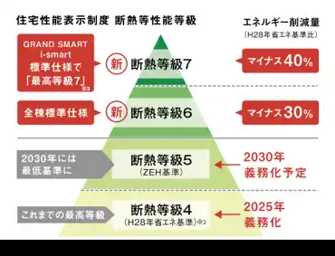 | ※2:枠組壁工法商品に限る。間取りや採用する仕様によっては断熱等級6を満たせない場合があります。 | |||||||||