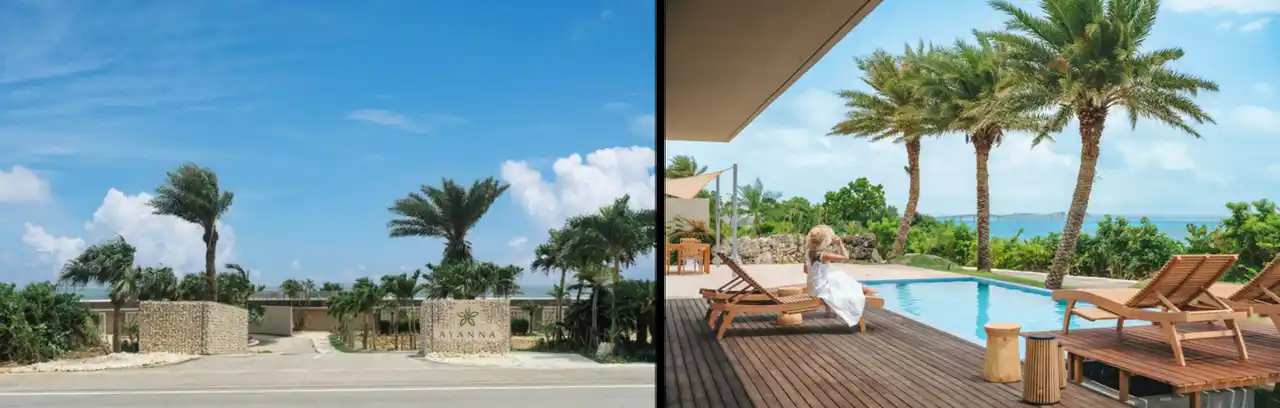 「AYANNA Miyako」は、沖縄県宮古島市伊良部字池間添に位置し、下地島空港より車で約10分、宮古空港より約20分のアクセスに優れたロケーションにあります。9,000平方メートル 超の広大な海岸線沿いの土地でプールスイート・サウナプールスイート・VILLAスイートの計7室からなる高級リゾートホテルです。 |