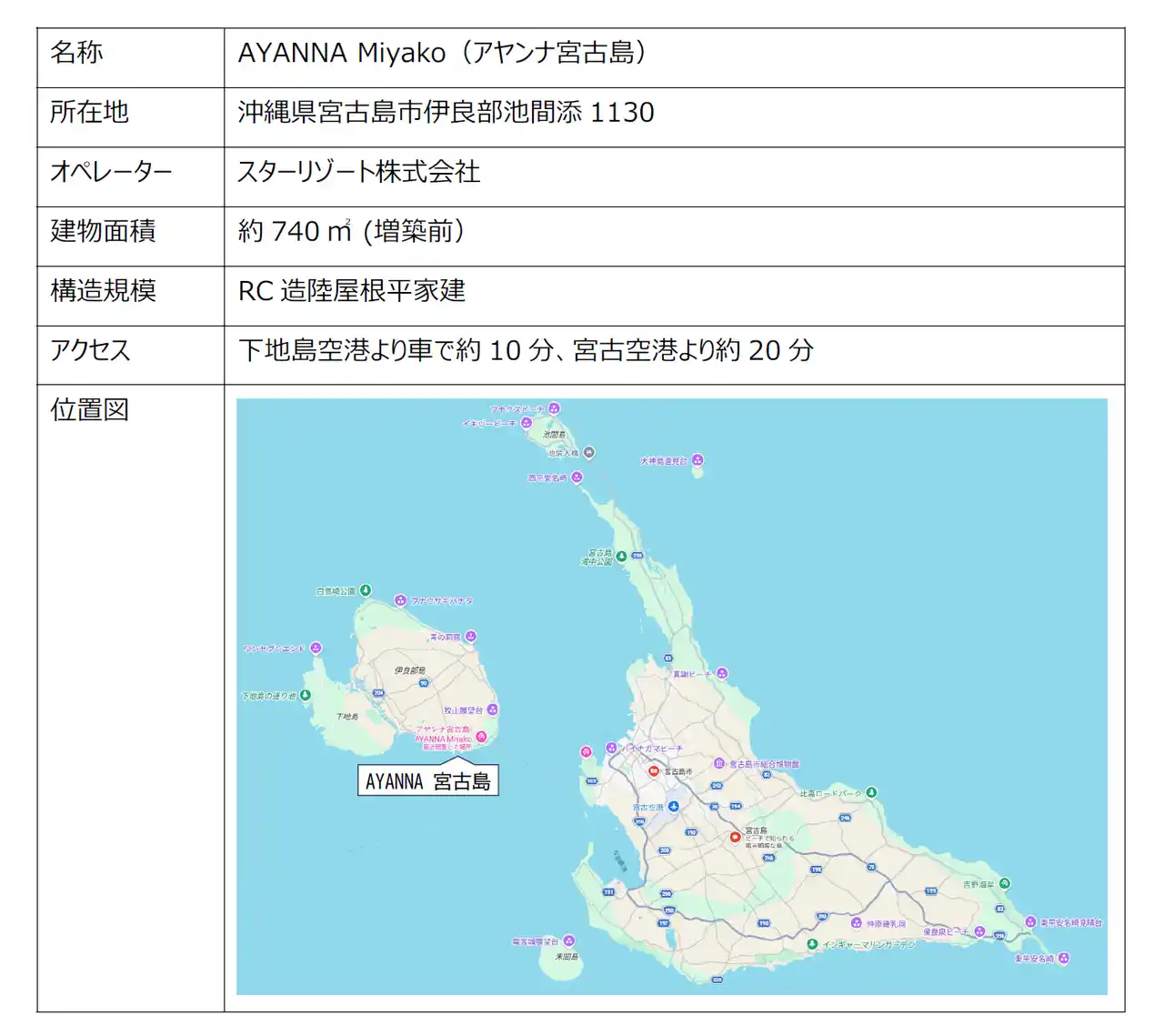 弊社はホテルおよび旅館等の宿泊施設に特化した不動産ソリューションカンパニーとして、宿泊施設の再生・価値向上を通した地域の雇用維持、観光・文化の振興に貢献し、地域経済に新たな活力をもたらす取り組みを推進しております。本件においても、宮古島・伊良部島という希少な観光リゾートにおける高付加価値施設の成長に伴走し、投資家・運営者・地域それぞれにとって持続可能な価値創造を実現してまいります。 |