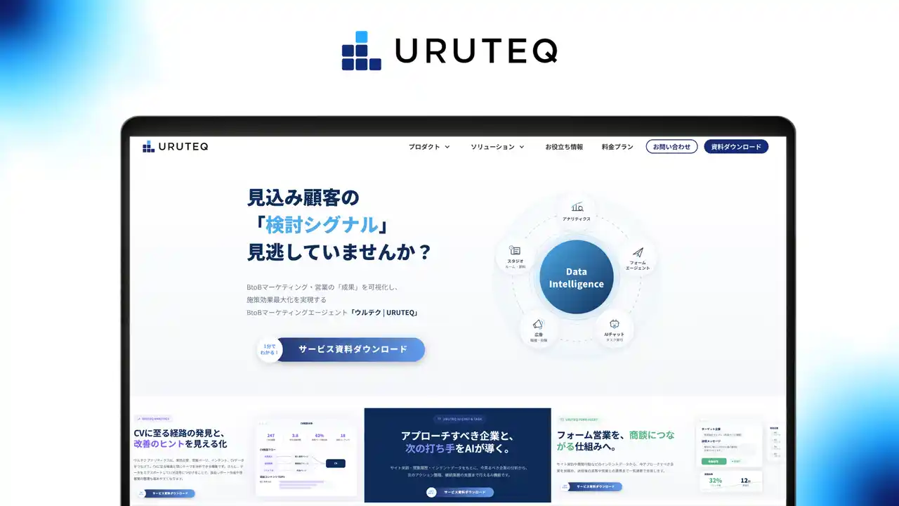 ログリー株式会社(本社:東京都渋谷区、代表取締役:吉永浩和、証券コード:6579)は、BtoBマーケティングエージェント「ウルテク( https://uruteq.logly.co.jp/ )」のサービスサイトを2026年4月8日(水)に全面リニューアルしたことをお知らせいたします。新サイトでは、データ収集・可視化から、施策実行、効果測定までを支援する5つのプロダクトの詳細や、マーケティングと営業、営業企画(推進)各チームにとってどんな価値があり、どのように活用することで成果最大化につながるのかを届ける内容へとアップデートさせました。 |