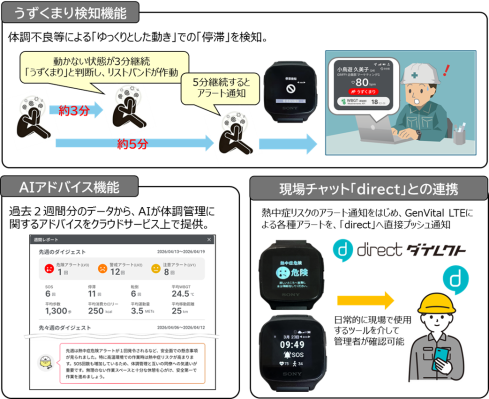 これら新機能の実装により、さらなる現場作業員の安全性向上と、安全管理の効率化を実現します。