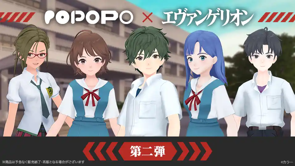 「POPOPO × エヴァンゲリオン」第二弾 制服をモチーフとした特別なホロスーツがショップに登場
