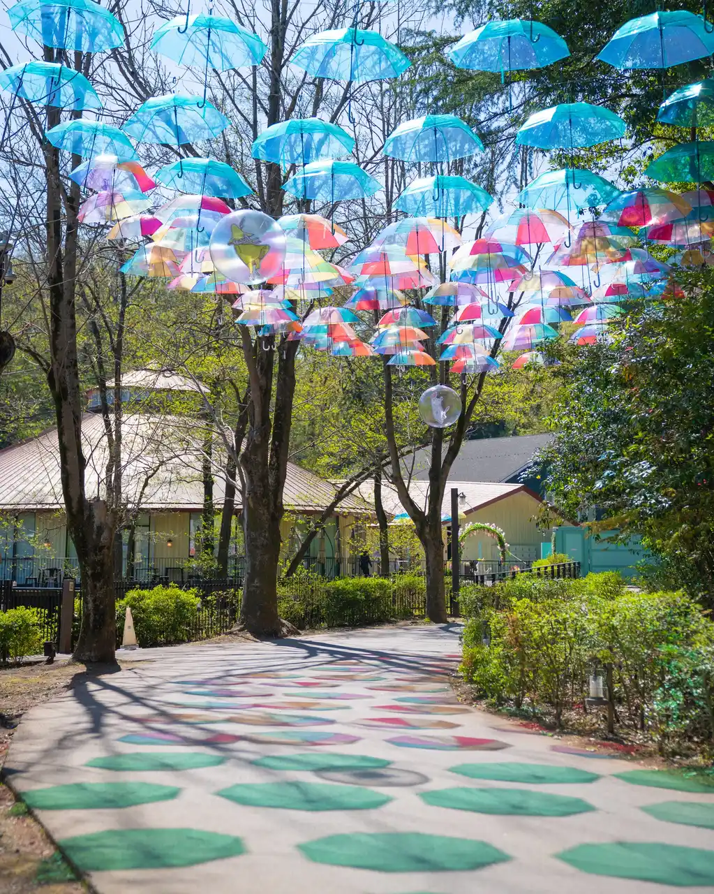さらに、今年は上空の鮮やかさだけでなく、光の透過で浮かび上がる傘のシルエットや、雨の日のリフレクションも華やかに。新緑の季節だからこそ、雨に濡れて鮮やかさを増す自然の美しさや、地面の彩りも楽しめるアンブレラスカイロードになっています。