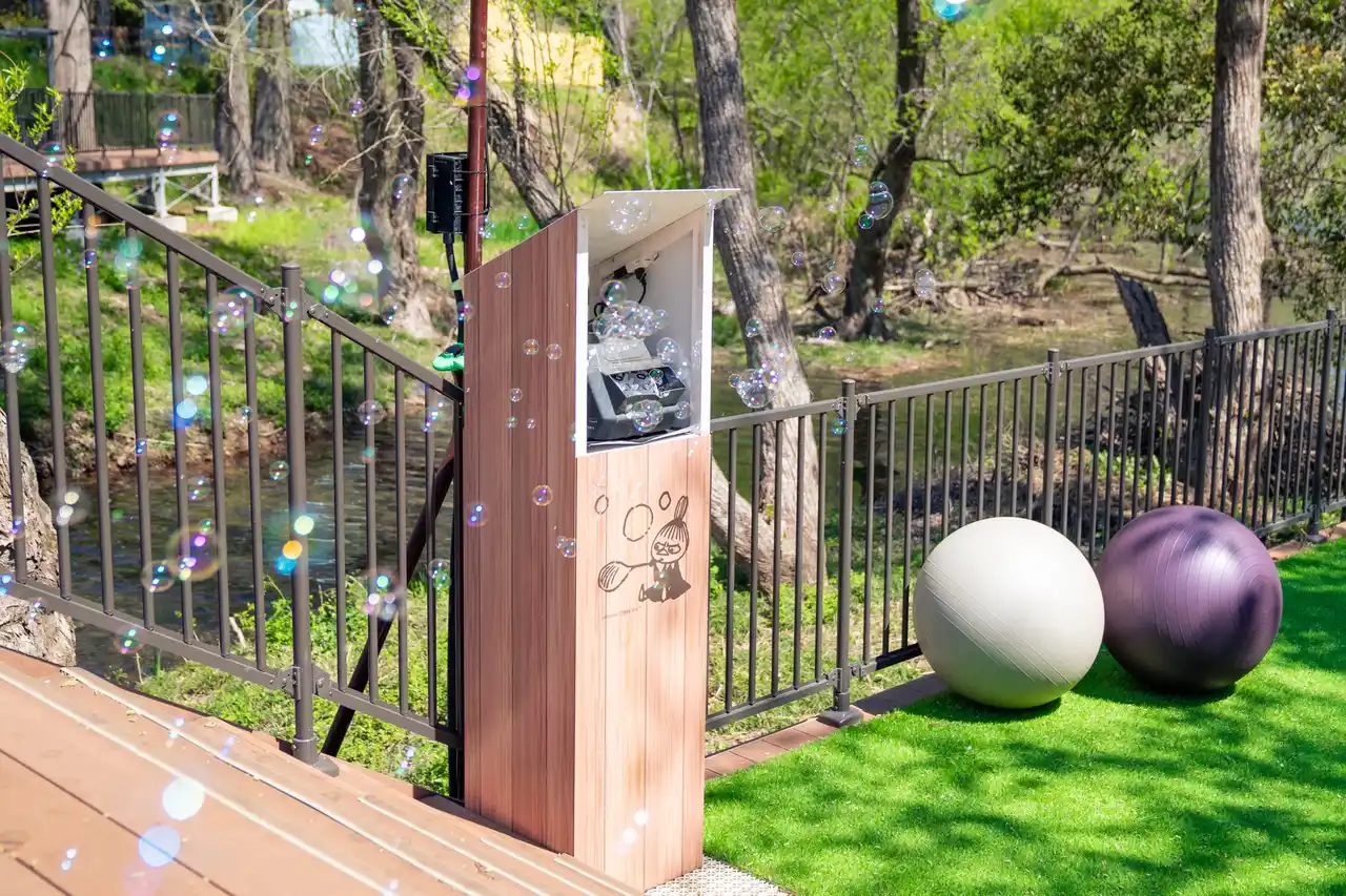 さらに、テラスに設置されたバブルマシンから、きらきらと輝くシャボン玉が一斉に舞い上がり、テラス全体が幻想的でフォトジェニックな演出に包まれます。ふわふわと漂うシャボン玉に囲まれながら映える写真撮影もお楽しみいただけます。 |