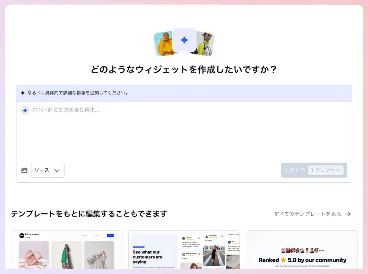 作りたいデザインを文章で入力、またはテンプレートを選択 |