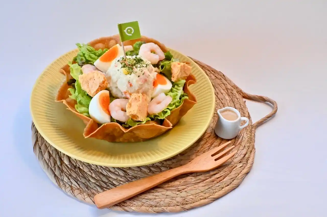 サクっとした食感とそば粉の香りが口いっぱいに広がる揚げガレットに海老やカリカリチーズをトッピング。コトリの巣をイメージしたボリューム満点のオリジナルサラダです。 |