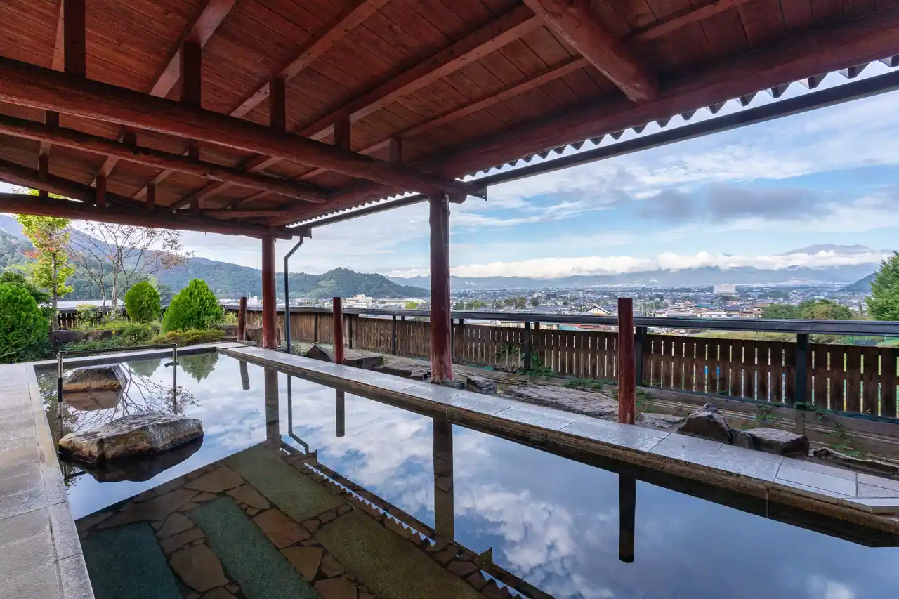 温泉は眺望を楽しめる展望風呂、四季の移ろいが感じられる庭園露天風呂、内湯の計3種類のお風呂を完備。ゆっくりと温泉に浸かりながら、心と身体を癒すひとときをお過ごしいただけます。 |