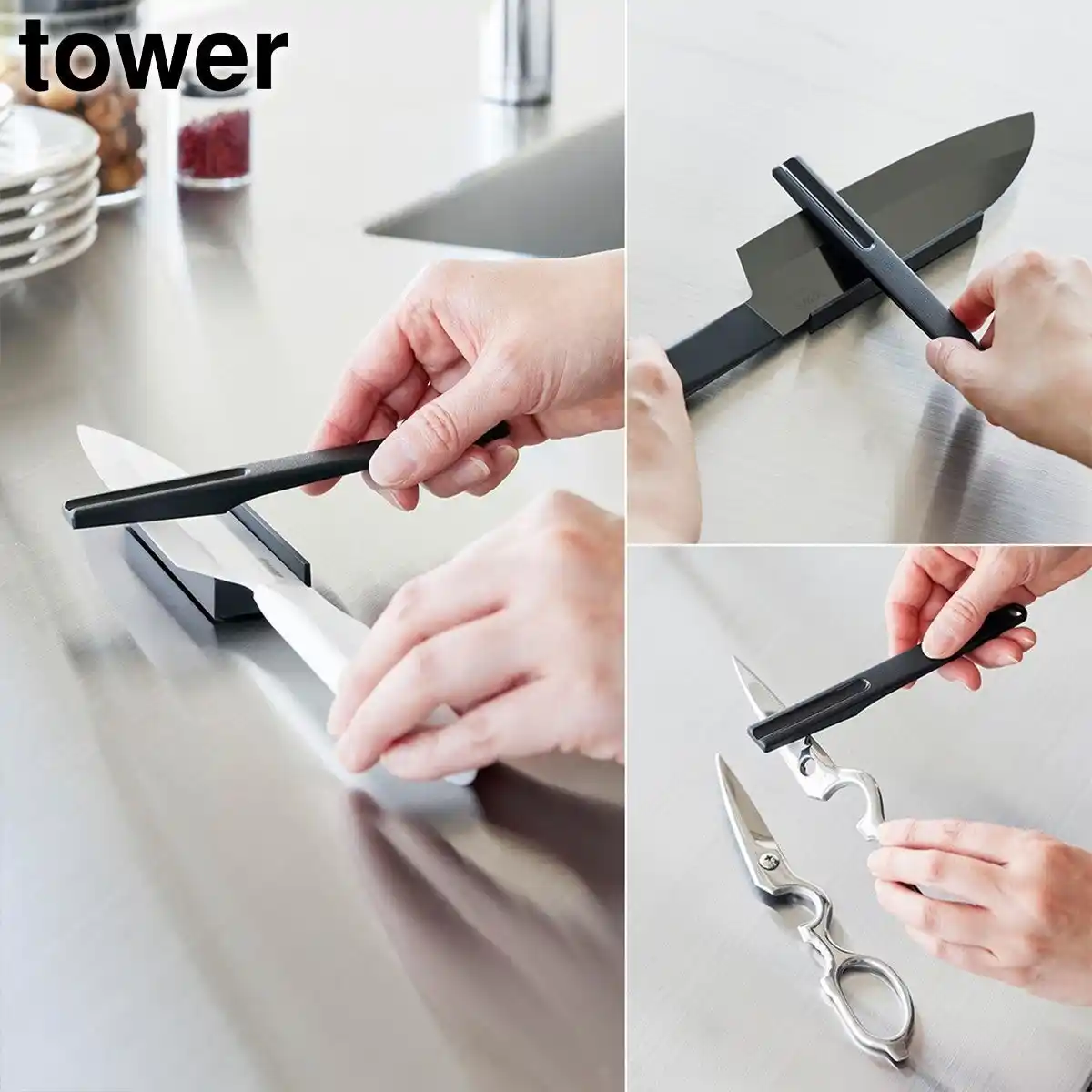 ■研ぎ職人と同じ角度で研げるスティック形状のシャープナー 通常の砥石では研げないセラミックナイフに対応したシャープナーです。 |