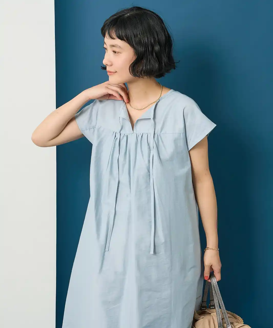 接触冷感/UVカット ヘンリーネックフレアワンピース ¥8,998(税込) |