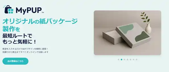 「My PUP」に実装されたAIエージェントは、ユーザーの用途やイメージをもとに、適したパッケージ形状やサイズ、デザイン候補を提案する仕組みです。 |