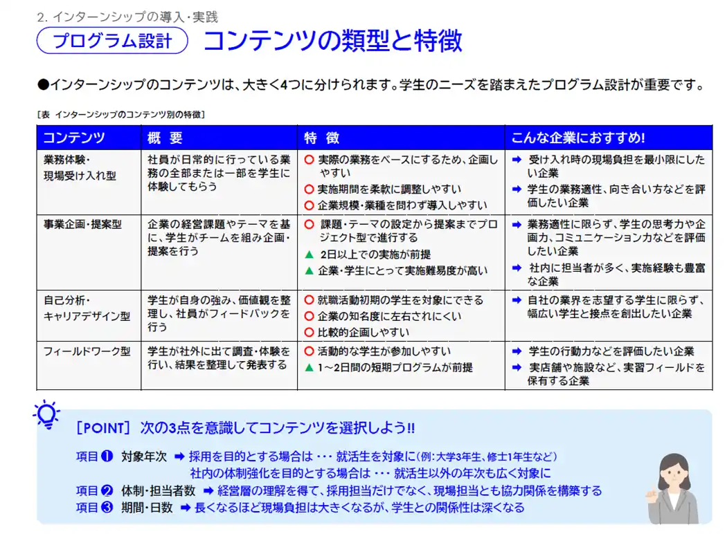 インターンシップは学生のキャリア形成において重要性が高まっており、企業にとっても学生との接点づくりに欠かせない取組となっています。 |