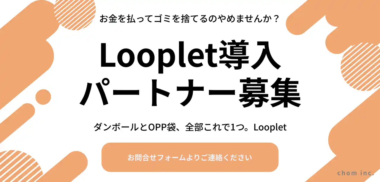 | 株式会社chom、段ボールとOPP袋を一体化した再利用型梱包「Looplet」を開発。Startup Japan 2026に出展、実物展示・導入企業・協業パートナーを募集。 |