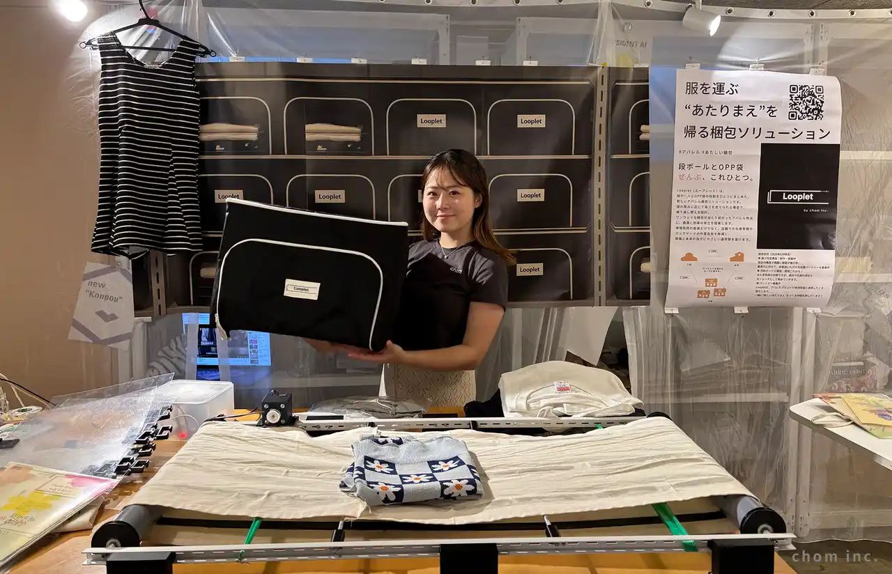株式会社chom(本社:東京都品川区、代表取締役:野崎絵未里)は、2026年4月15日(水)~16日(木)に幕張メッセで開催される展示イベント「Startup Japan EXPO 2026」に出展いたします。 当社では、アパレル業界における過剰包装・使い捨て梱包の課題に向き合い、「脱・個包装(OPP袋)」を実現する再利用型梱包ボックス「Looplet(ループレット)」の開発を進めています。 展示会では、プロダクトの実物展示およびデモンストレーションを通じて、導入に関するご相談や、アパレル企業および物流事業者との実証実験・協業パートナーの募集を行います。 |