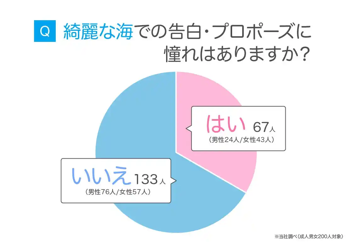 続いて、成人男女200人に「綺麗な海での告白・プロポーズに憧れはありますか?」というアンケートをとりました。 |