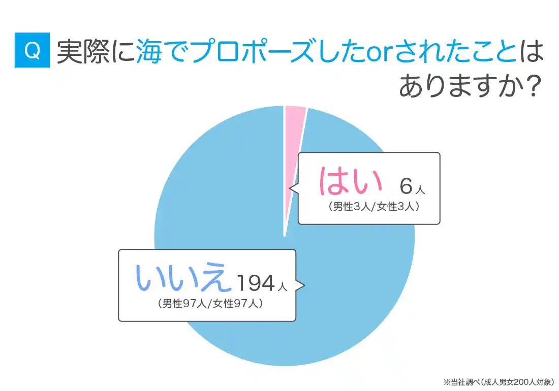 綺麗な海にロマンチックなイメージがあるのは確かですが、そこでの告白やプロポーズに憧れを抱いている人は少数派であることがわかります。 |