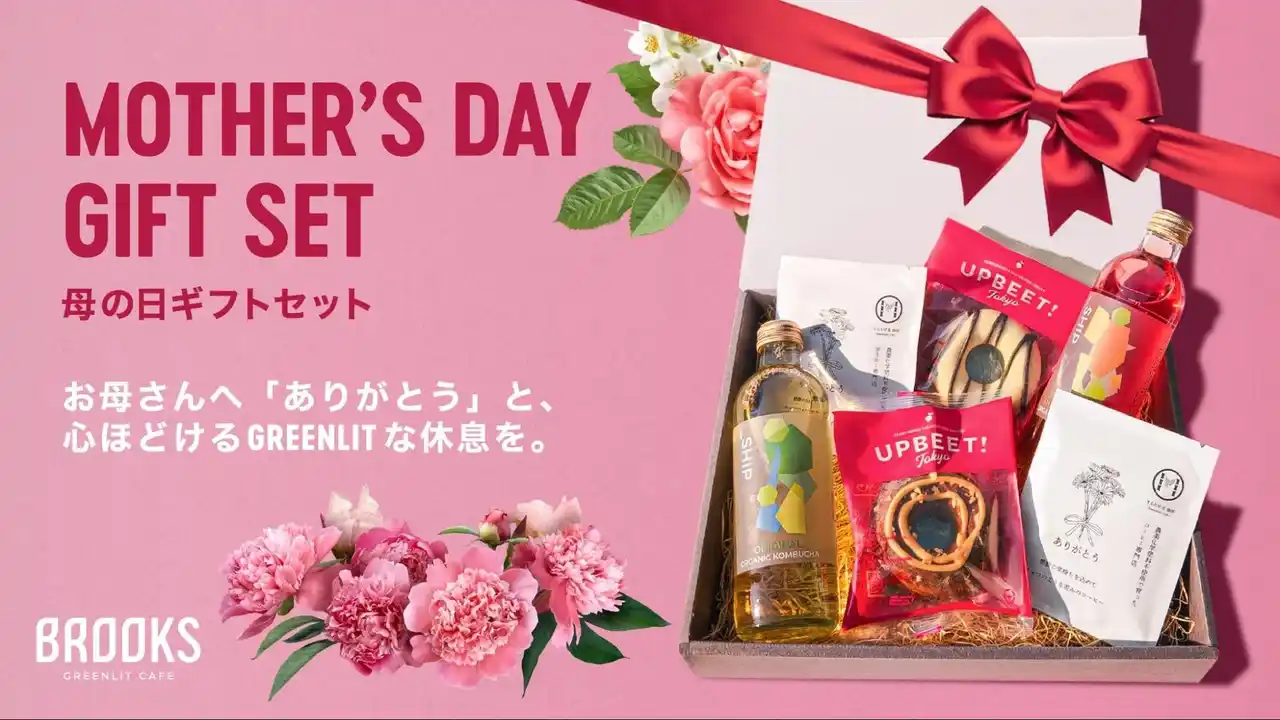 BROOKS GREENLIT CAFE(東京都港区南青山)では、4月20日(月)~5月10日(日)の期間中、ウェルネス志向の高まりを背景に、店頭で人気の高い、プラントベースや発酵、農薬や添加物に配慮した商品などを組み合わせ、母の日限定ギフト「MOTHER’S DAY GIFT SET」として発売いたします。 |
