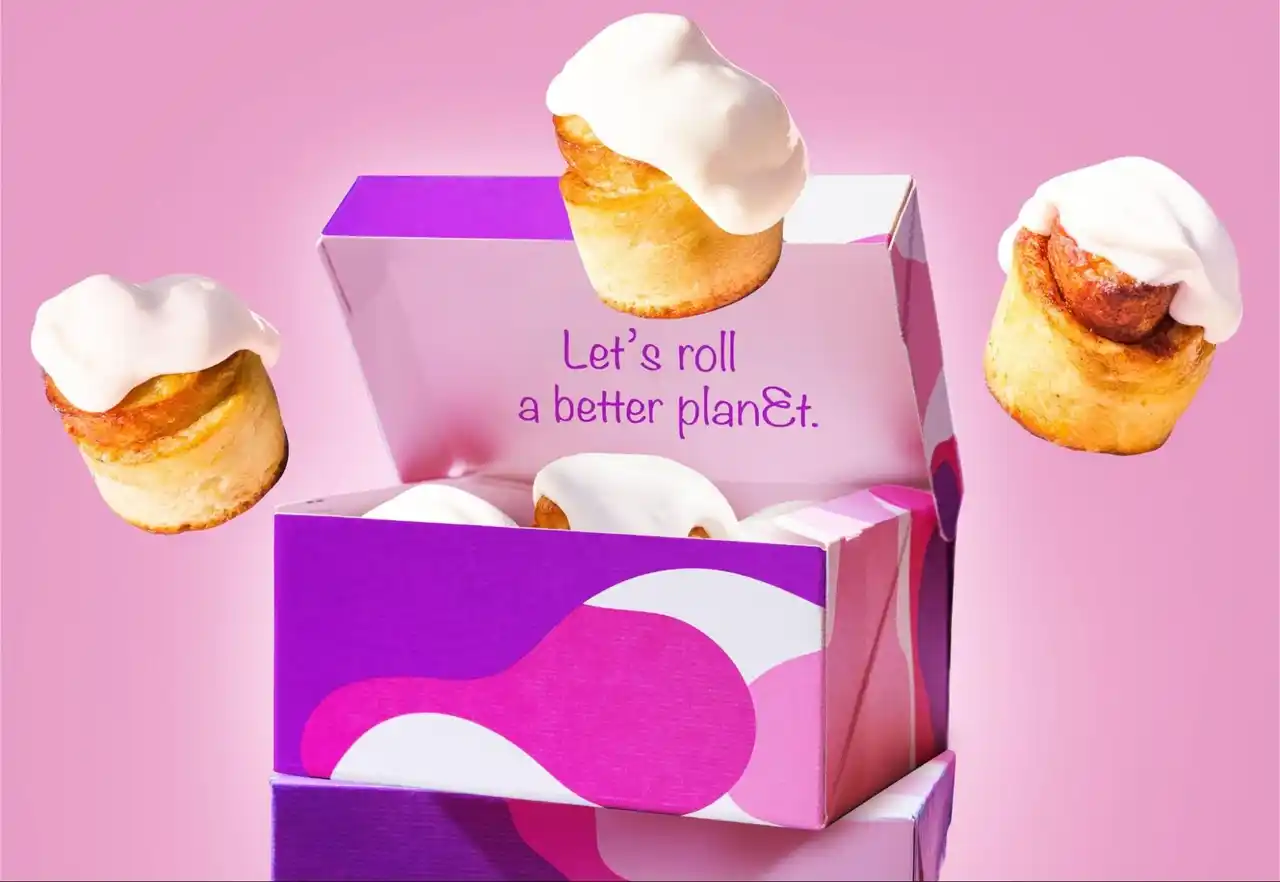 プラントベース・カフェ「1110 CAFE/BAKERY」で不動の人気を誇る「ザ・シナモンロール」を原点に開発されました。桃の花から採れた天然の「花酵母」や国産小麦「ゆめちから」を100%使用してゆっくり発酵させたもっちりとした生地、豆乳をベースにしたやさしい甘さのクリーム、粗糖でカリッとキャラメリゼした底面などの「おいしさの追求」はもちろんのこと、乳化剤・保存料・増粘多糖類といった食品添加物は使用しないこと、動物性食材を一切使用しない「プラントベース」の商品であること、製造工房は100%再生可能エネルギーを使用するなど、“人にも地球にもやさしいロールパン”を目指しています。 |