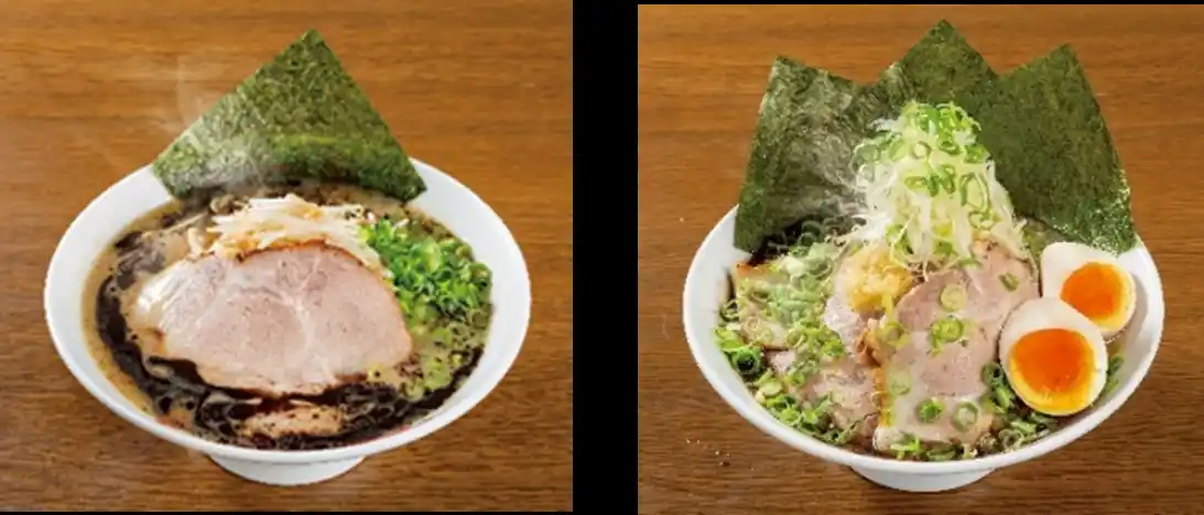 代表メニューの「焦がしにんにく黒とんこつラーメン」は真っ黒な「秘伝の黒マー油」を使用し、とんこつスープ、麺とチャーシューのすべての味をまとめ上げています。 |
