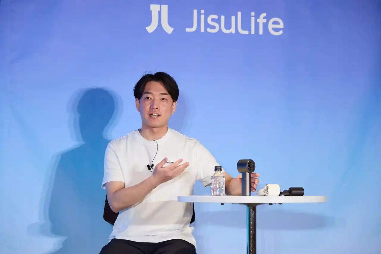 健司)は、2026年4月8日(水)、日本法人設立にともなう初の製品発表会を開催しました。発表では日本市場への本格参入の背景や今後の展望について代表の清原から発表があった他、プレミアムシリーズを含む新商品6モデルが発表されました。その後、気象予報士・森田正光氏とのトークセッションも実施され、日本の多様化する暑さへの対策としてポータブルファンの効果や正しい使い方なども話し合われました。森田氏は、JisuLife製品を推奨できるポイントとして「100段階の細かい風量設定」や「最大9m/sの風速」を挙げ、実際の使用シーンとして「冷房で部屋全体を冷やすだけでなく、個々人での暑さ対策が重要」と述べました。 |