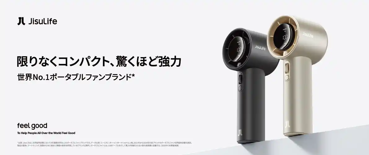 JISULIFE TECHNOLOGYは、4年連続世界No.1のシェア*を誇るポータブルファンブランドJisuLifeの日本法人です。Feel Goodをビジョンに掲げ、先進技術と洗練されたデザインを組み合わせた製品づくりに取り組んでいます。 |