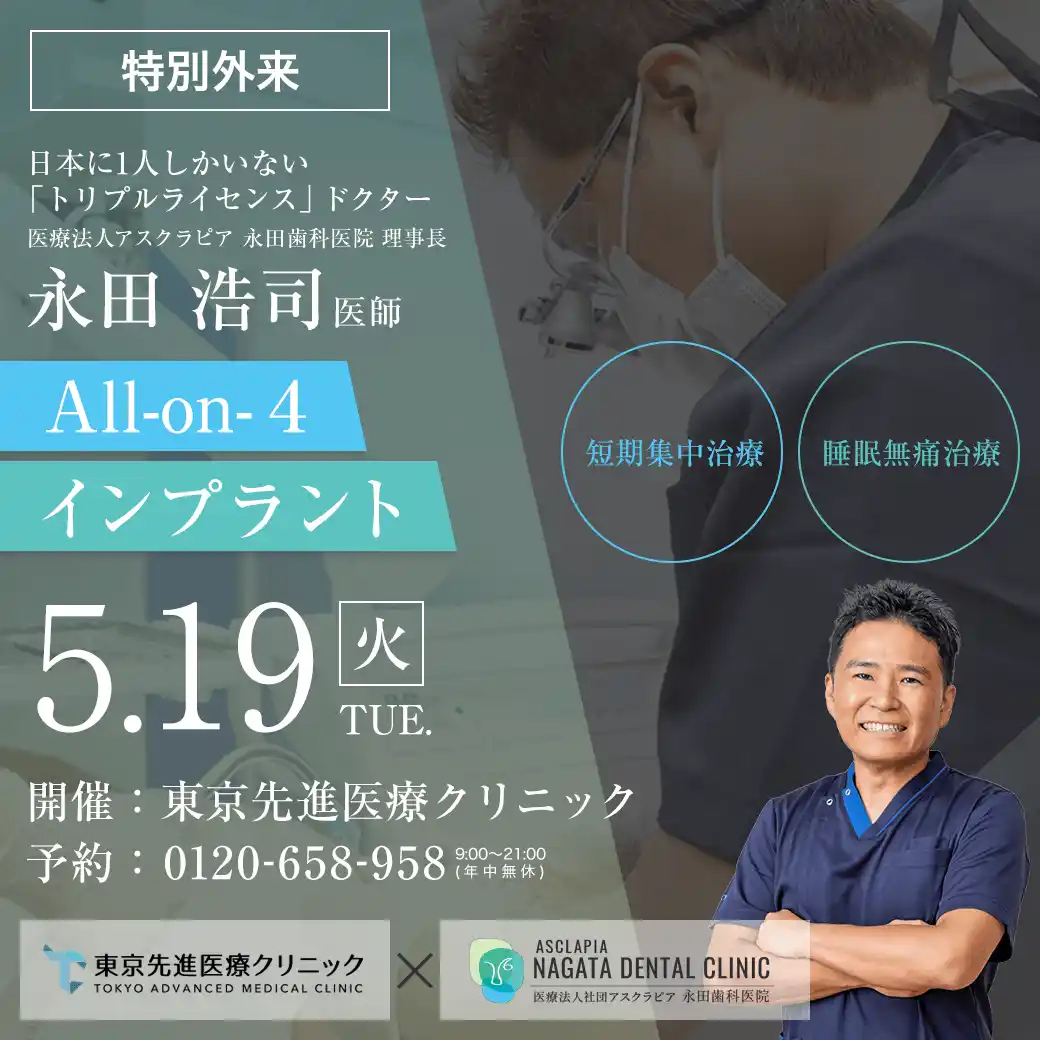 医療法人社団アスクラピア(東京都立川市/理事長:永田浩司)は、国内トップクラスの美容医療機関である東京先進医療クリニック(東京美容外科)赤坂院と連携し、同院施設にて「オールオン4(All-on-4)」治療の提供を開始いたしました。 |