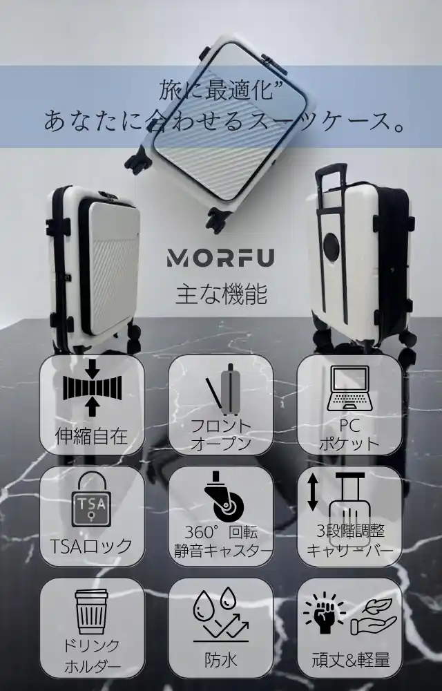 株式会社F&HARU(本社:熊本県合志市、代表:中村 尚登)は、日本初上陸となる可変式スマートスーツケース「MORFU」を、秋からの旅行・出張シーズンに向け、応援購入サービスMakuakeにて先行販売を2025年8月31日まで実施いたします。