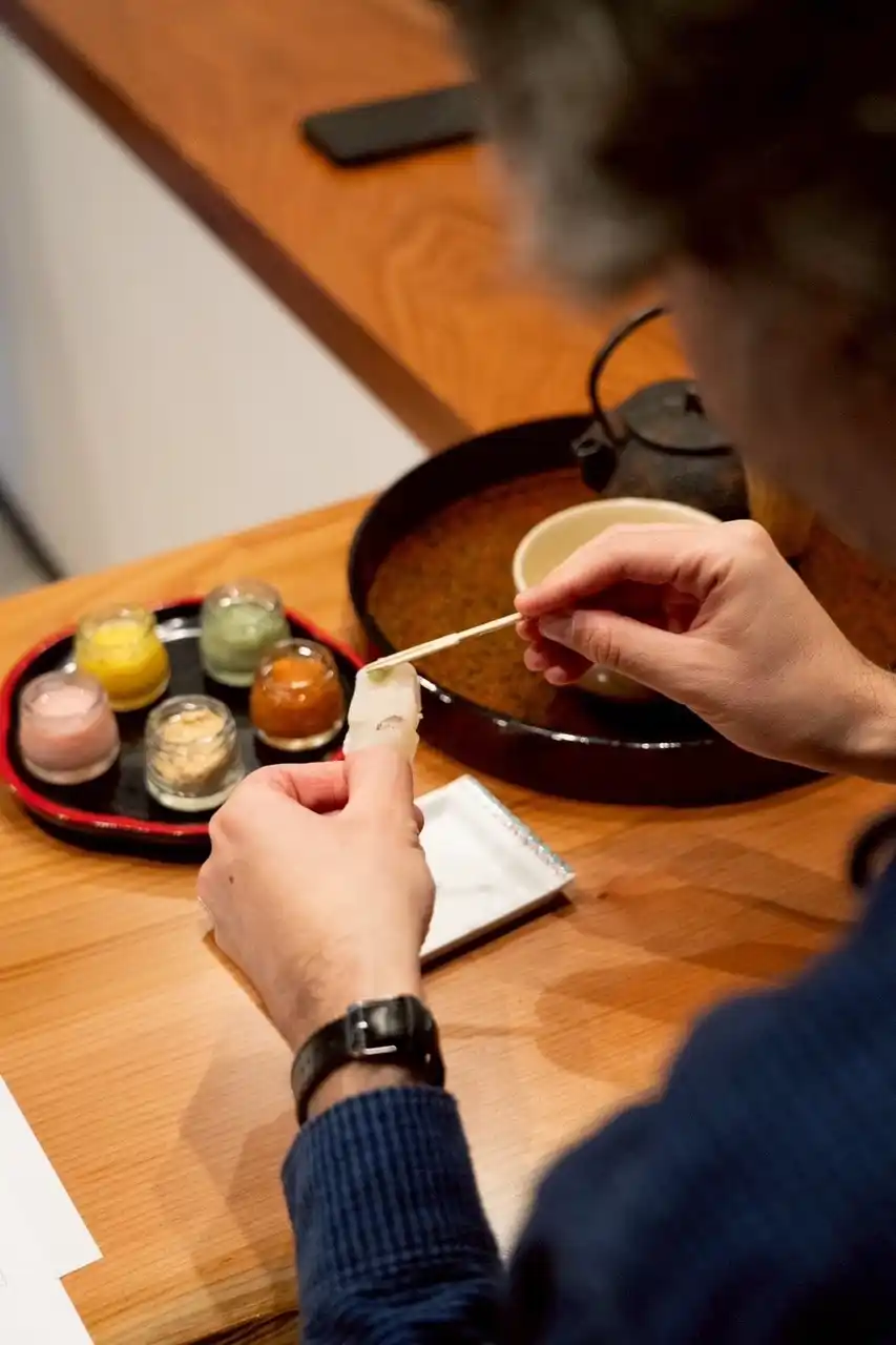 オリジナル麹(にんにく/パプリカ/梅)ときな粉を外郎(ういろう)にと一緒にお好みの組み合わせで楽しめる |