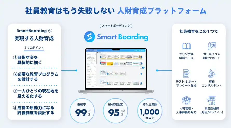 「Smart Boarding」は、「教育研修・コンサルティングのプロ」が提供する人財育成プラットフォームです。 |