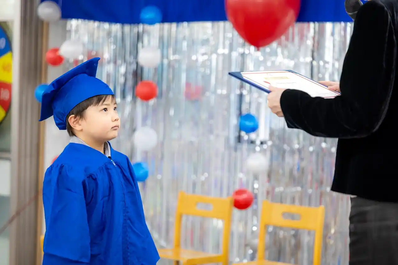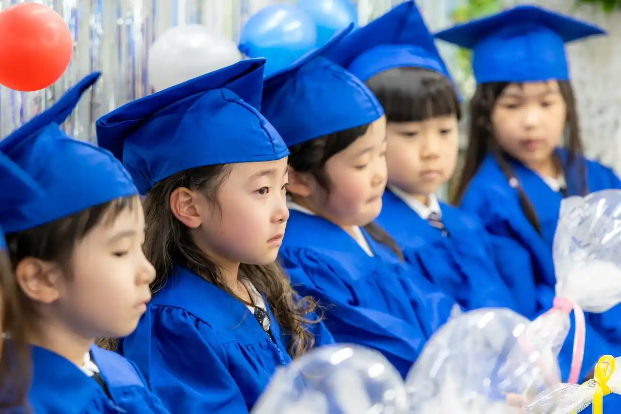 | 本卒園式の大きな特徴のひとつが、外国人講師や保護者から子どもたちへ向けたメッセージの時間です。講師や家族が子どもに言葉を贈るこの時間は、子どもを「守られる存在」としてではなく、一人の「人」として認め、尊重する大切な機会となっています。その言葉を受け取る中で、子どもたちは自分の存在価値を実感し、自己肯定感や自己効力感を育んでいきます。実際に、感極まり涙を流す子どもたちの姿も見られます。日本では、親が子どもに対して自らの思いを言葉で伝える機会は決して多くはありません。だからこそ、このような時間は、子どもたちの人生に深く刻まれる、かけがえのない経験となります。 | |||||||||
