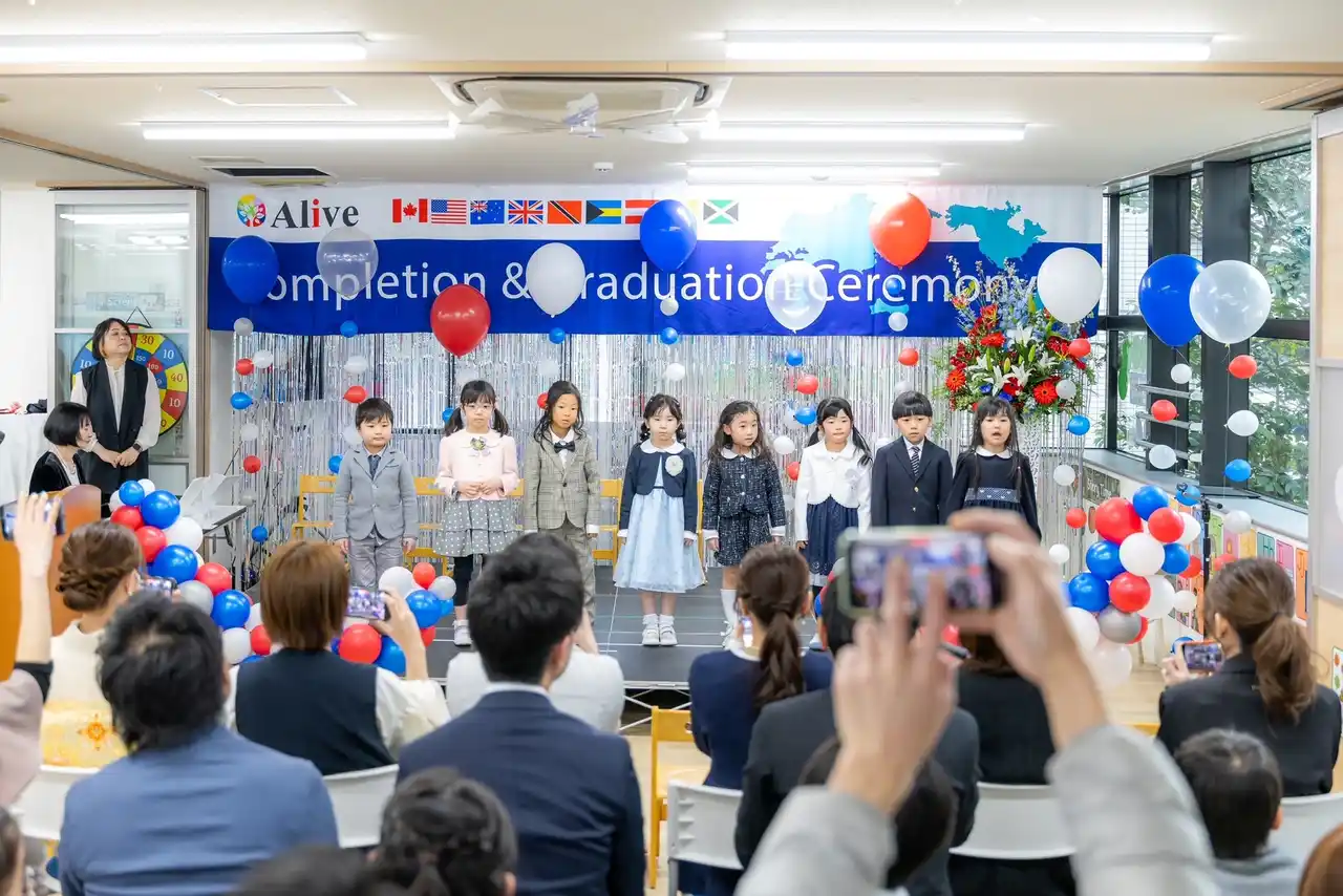 | 株式会社アライブ(本社:愛知県名古屋市/代表取締役:三井博美)が運営する英語の保育園「アライブインターナショナルスクール」にて、2026年3月20日、卒園式が開催されました。本卒園式では、創立以来継続して、園児一人ひとりが英語で思い出のスピーチを行い、全員が舞台に立って卒園証書を受け取る形式を採用。さらに、在校生・外国人講師・保護者から子どもたちへメッセージを伝える時間を設けるなど、子どもを一人の「人」として尊重する教育を体現するプログラムとして実施されました。英語での表現力だけでなく、自己肯定感や共感力といった非認知能力を育む教育実践として注目されます。 | |||||||||