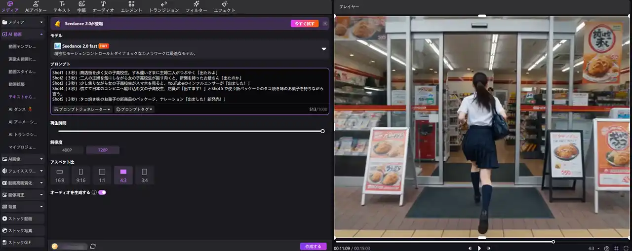 Seedance 2.0の導入により、これまで試行錯誤が必要だった動画生成は、よりイメージに近い形でスムーズに形にできるようになりました。