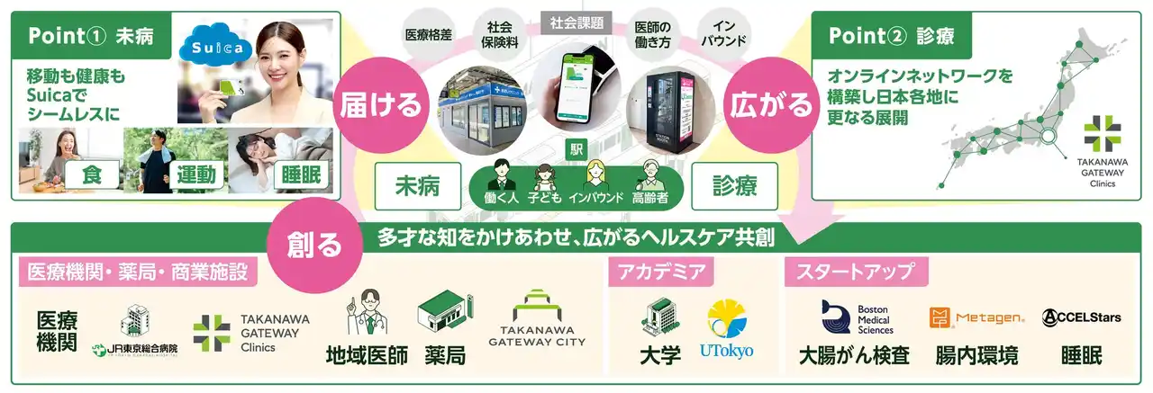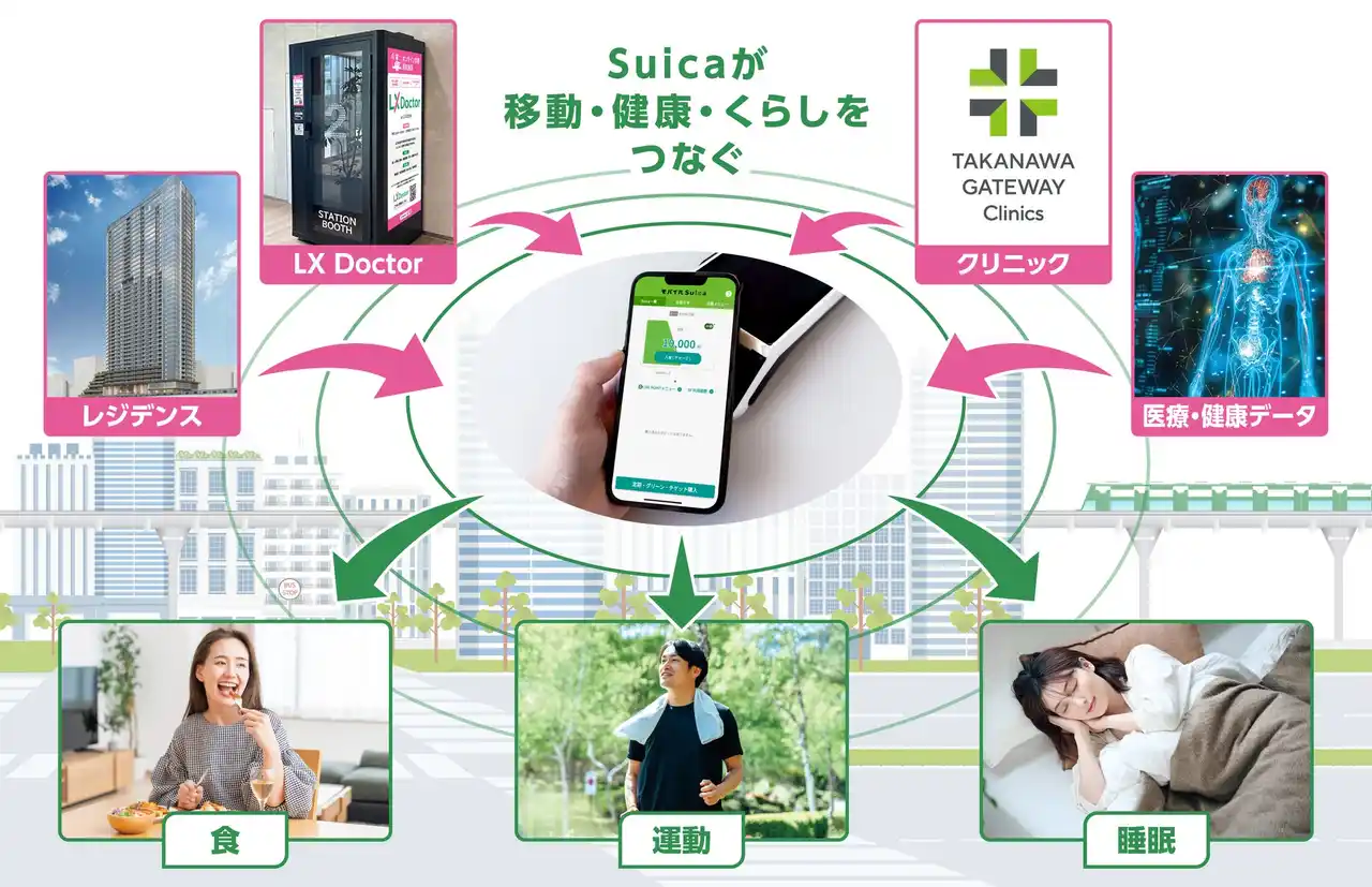この取組みは、TAKANAWA GATEWAY CITYを起点としたヘルスケアサービスの拡大とともに、お客さまの生活に徹底的に根差したSuicaを創り上げていく「Suica Renaissance」の一環として推進します。 |