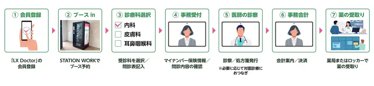 〇このたび、関係法令の改正※2によりオンライン診療受診施設として個室ブースの単独展開が可能になったことから、エキナカ初の個室ブースでオンライン診療を受診できるサービス「LX Doctor※3」を22駅(24ブース)で始めます。 |