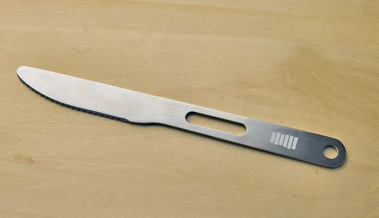 カトラリーは全てステンレス製で丈夫!アルミニウム製のカラビナが付いているので、3本まとめておけるのも便利。カトラリーそれぞれロゴが違うんです! |